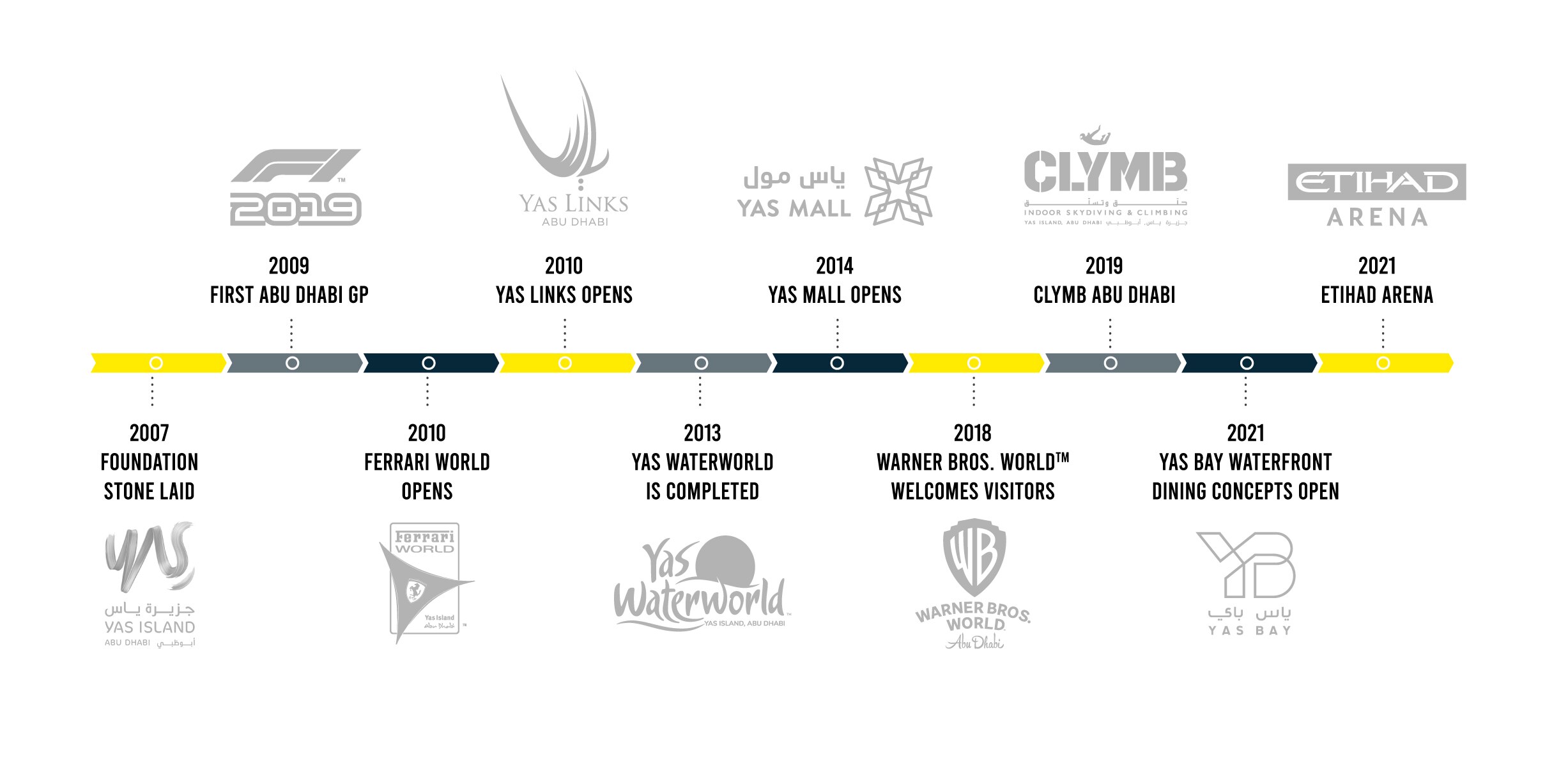 New adventures, year after yearYas Island first opened to visitors in late 2010, three years after its foundation stone was laid. In the decade since then, new attractions have been added to the destination including the Yas Links golf course in 2019 and Etihad arena in 2021.