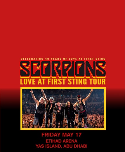 Experience a historic musical extravaganza as the renowned German rock band, Scorpions, perform on Yas Island. The electrifying band will “Rock You Like A Hurricane” with their powerful vocals and thunderous instrumentals at Etihad Arena on 17 May.